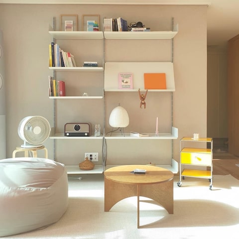 아무튼!! 전체 샷은 이렇습니다.~노란소파와 함께! 소파선반을 많이 고민했는데 이렇게 하니까 너무 좋아요. 🙂